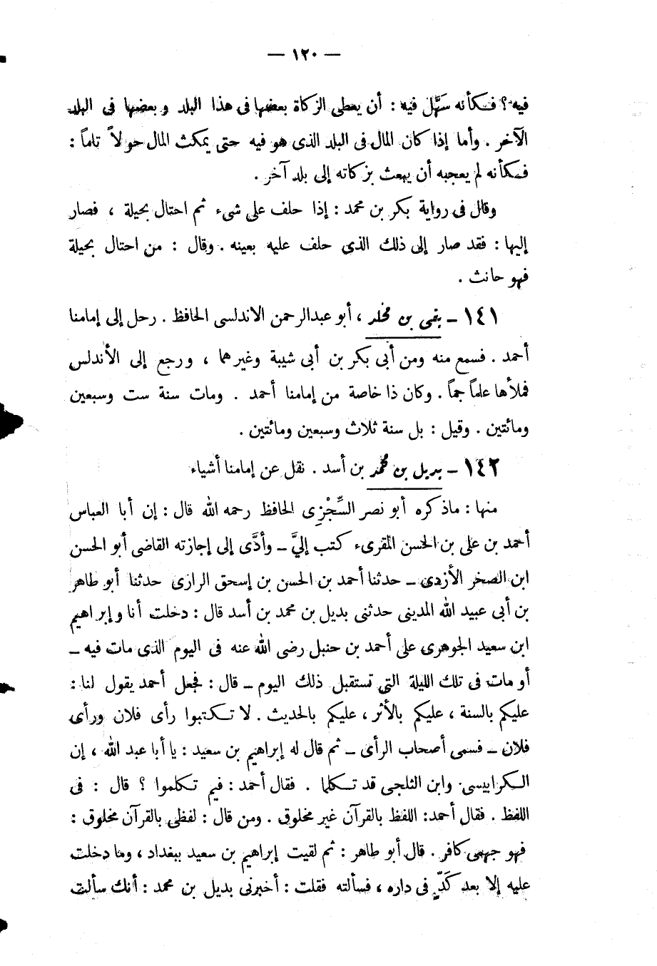 رحل إلى إمامنا أَحْمَد فسمع منه ومن أبي بكر بْن أبي شيبة وغيرهما ورجع إلى الأندلس فملأها علما جمًا وكان ذا خاصة من إمامنا أَحْمَد ومات سنة ست وسبعين ومائتين وقيل بل سنة ثلاث وسبعين ومائتين.