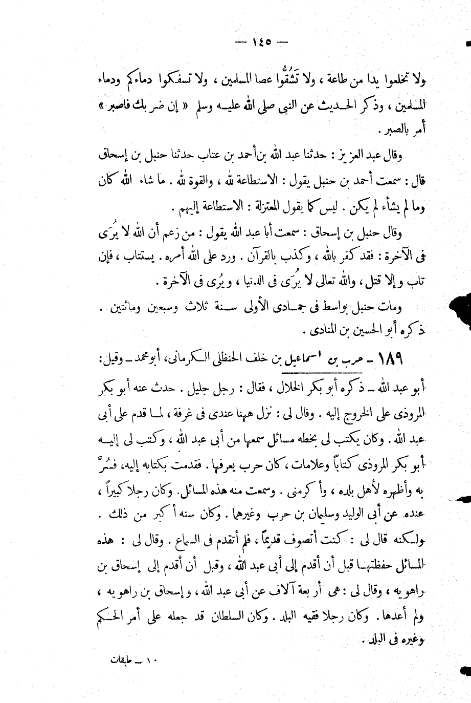 حرب بْن إِسْمَاعِيلَ بْنِ خلف الحنظلي الكرماني أَبُو مُحَمَّد وقيل أَبُو عَبْدِ اللَّهِ