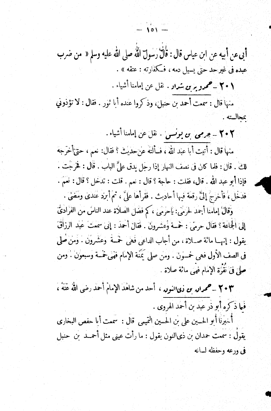 أَخْبَرَنَا أَبُو الحسين عَلِيّ بْن الحسين التميمي قَالَ: سمعت أبا حفص البخاري يقول سمعت حمدان بْن ذي النون يقول ما رأت عيني مثل أَحْمَد بن حنبل فِي ورعه وحفظه لسانه.