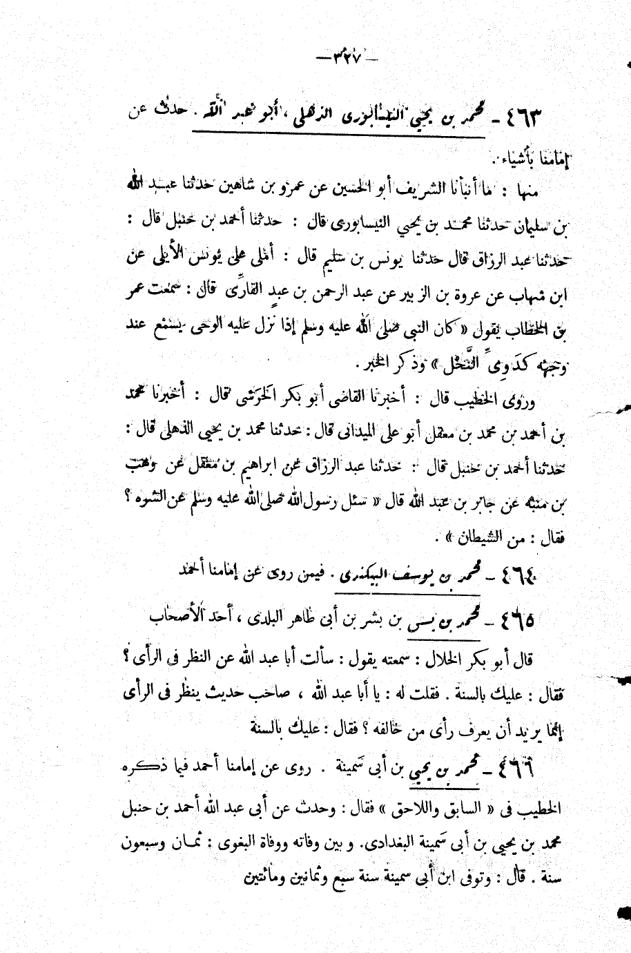 مُحَمَّد بْن يَحْيَى بْن أبي سمينة روى عَنْ إمامنا أَحْمَد فيما ذكره الخطيب فِي السابق واللاحق فقال: وحدث عَنْ أبي عَبْد اللَّهِ أَحْمَد بن حنبل مُحَمَّد بْن يَحْيَى بْن أبي سمينة البغدادي وبين وفاته ووفاة البغوي ثمان وسبعون سنة قَالَ: وتوفي ابن أبي سمينة سنة سبع وثمانين ومائتين.