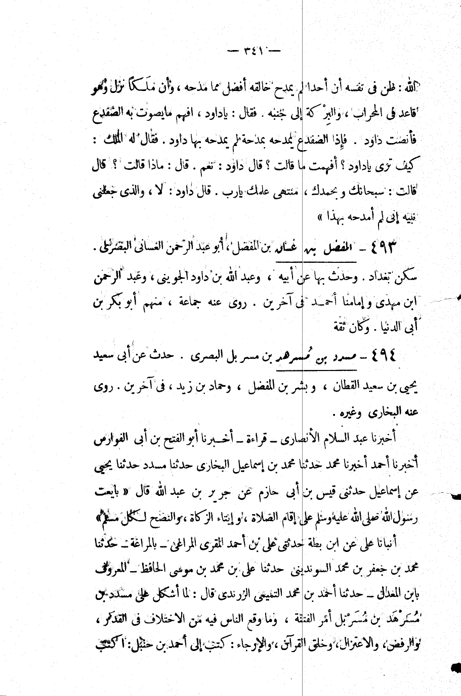 مسدد بن مسرهد بن مسربل البصري حدث عَنْ أبي سعيد يَحْيَى بْن سعيد القطان وبشر بن المفضل وحماد بن زيد في آخرين روى عنه البخاري وغيره.