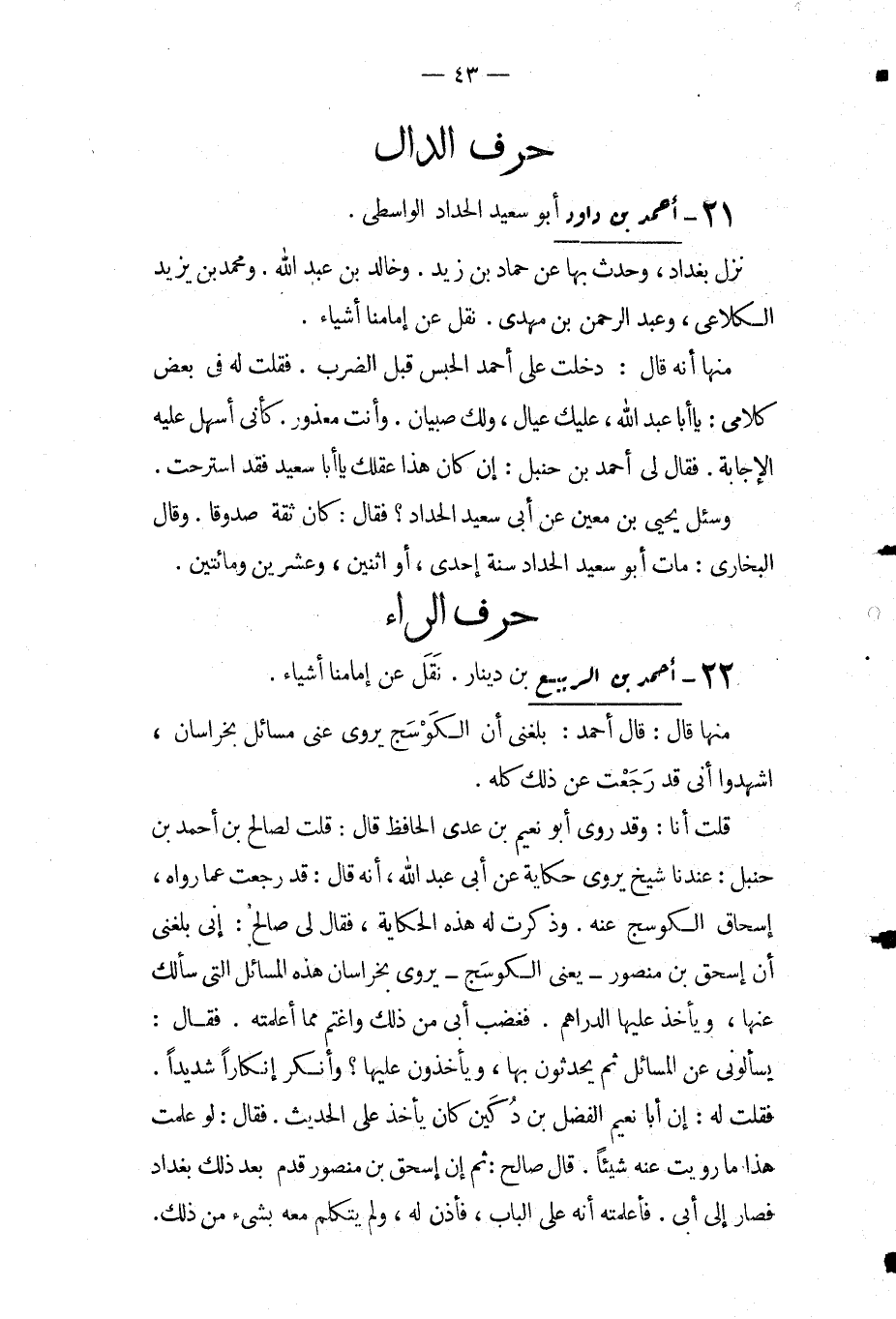 نقل عَنْ إمامنا أشياء منها قَالَ قَالَ أحمد بلغني أن الكوسج يروي عني مسائل بخراسان اشهدوا أنى قد رجعت عَنْ ذلك كله.