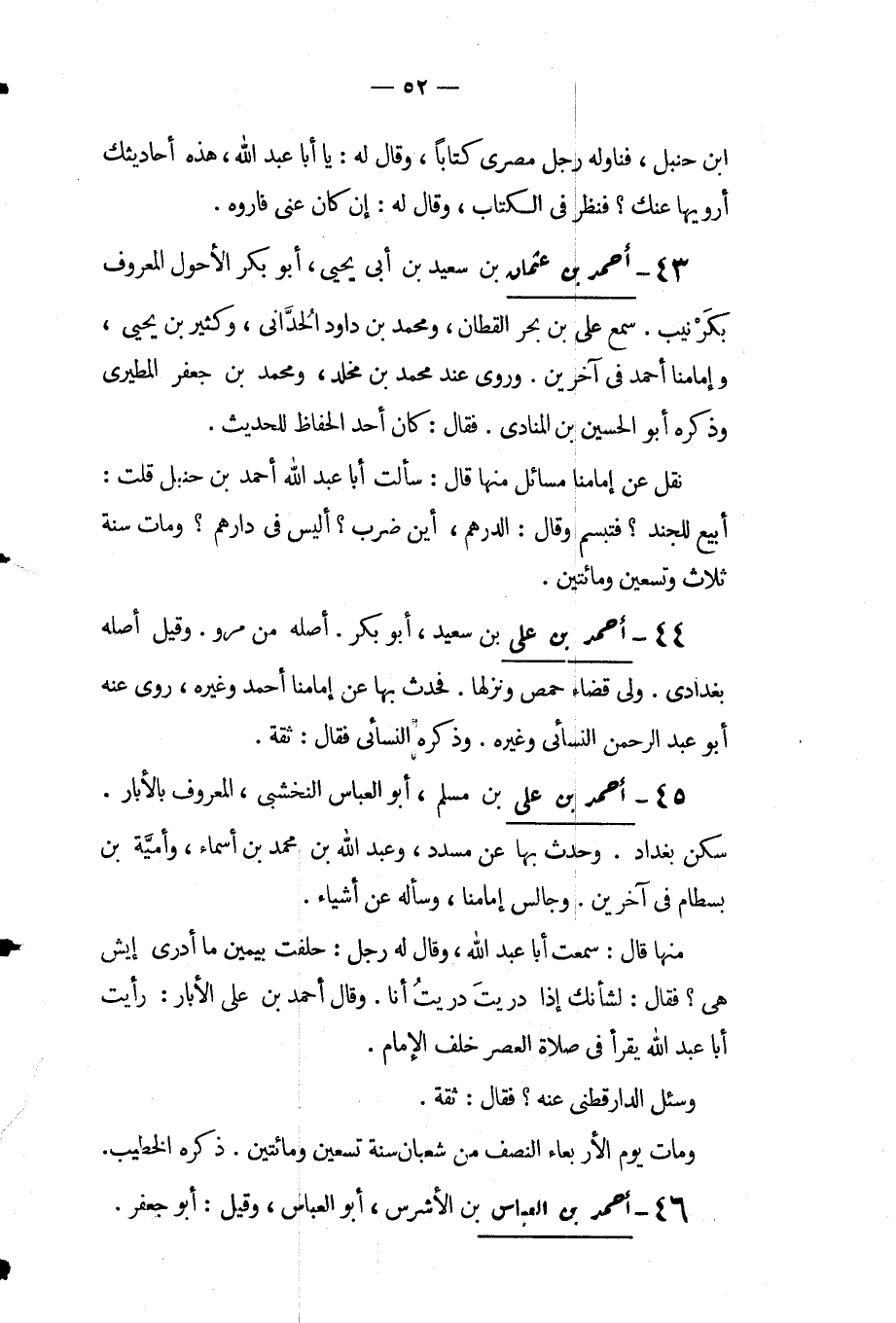 بْن حنبل فناوله رجل مصري كتابًا وقال له يا أبا عبد اللَّه هذه أحاديثك أرويها عنك فنظر في الكتاب وقال له إن كان عني فاروه.
