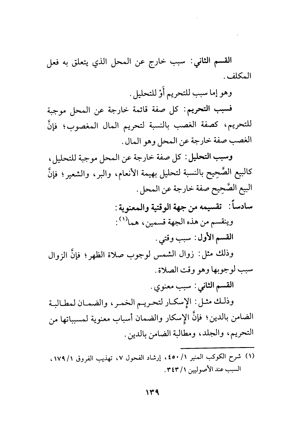 (¬1) شرح الكوكب المنير 1/ 450، إرشاد الفحول 7، تهذيب الفروق 1/ 179، السبب عند الأصوليين 1/ 343.