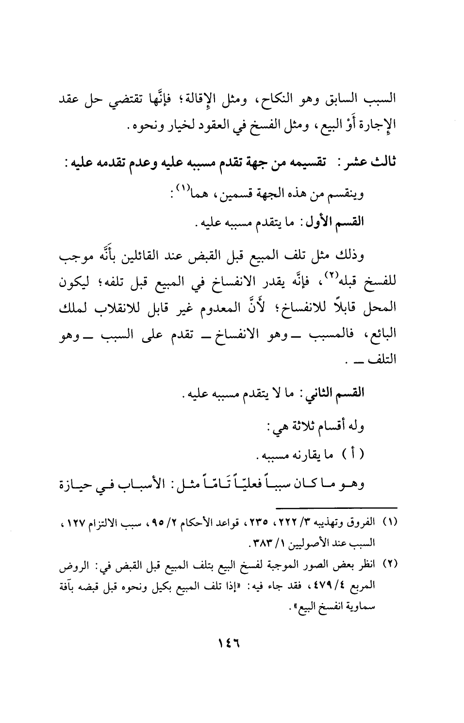 القسم الأول: ما يتقدم مسببه عليه.
