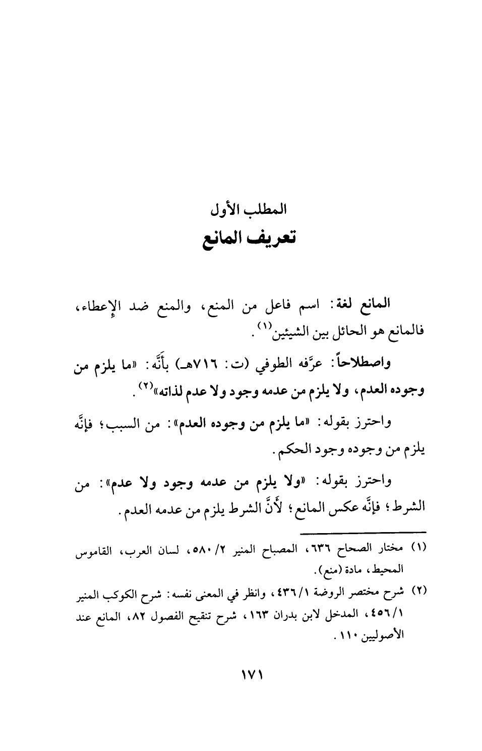 (¬2) شرح مختصر الروضة 1/ 436، وانظر في المعنى نفسه: شرح الكوكب المنير 1/ 456، المدخل لابن بدران 163، شرح تنقيح الفصول 82، المانع عند الأصوليين 110.