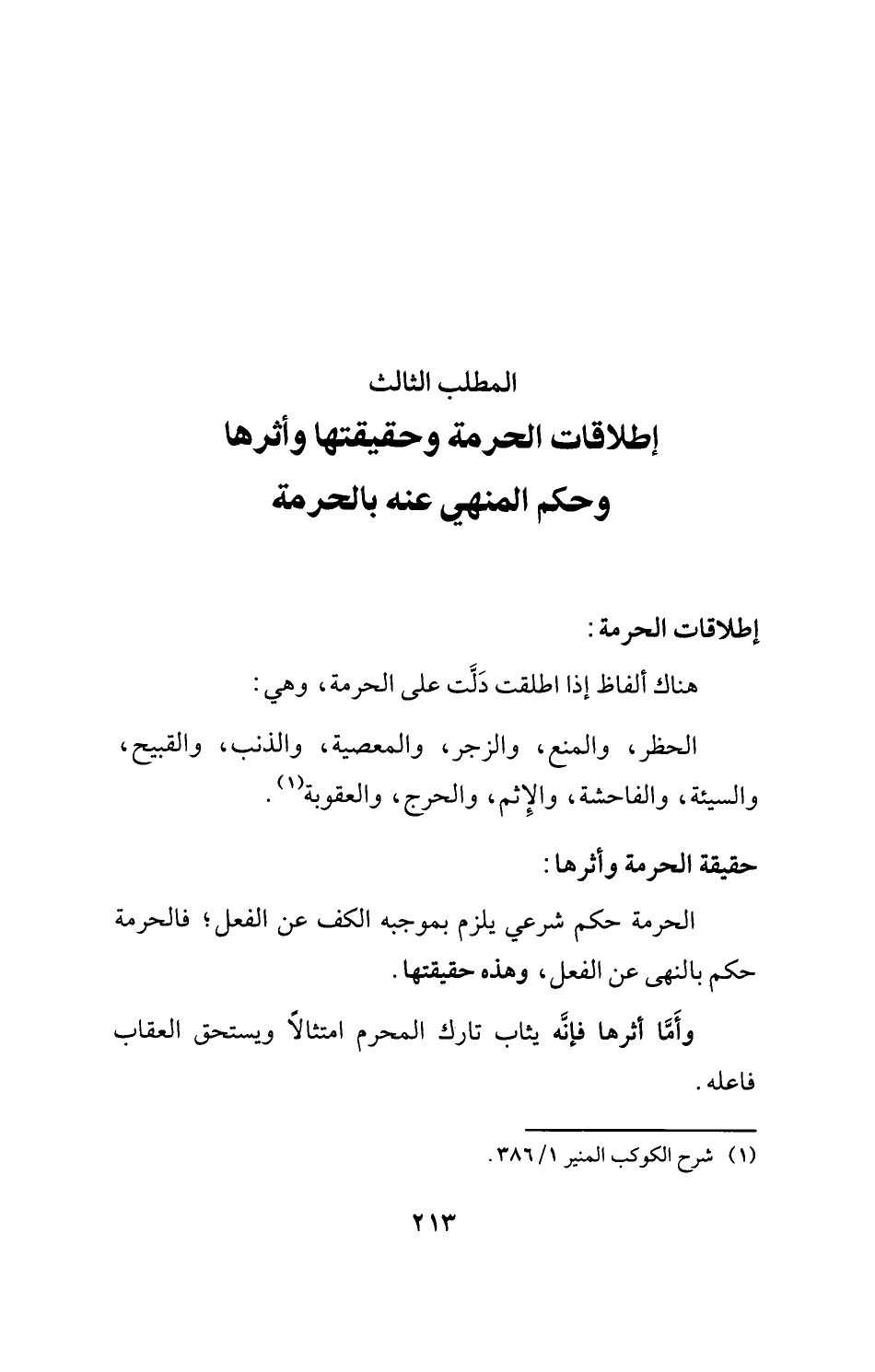 المطلب الثالث إطلاقات الحرمة وحقيقتها وأثرها وحكم المنهي عنه بالحرمة