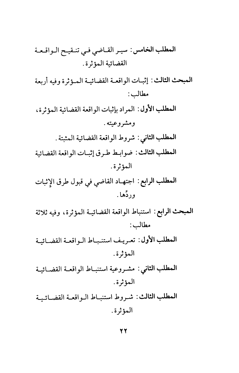 المطلب الثاني: شروط الواقعة القضائية المثبتة.