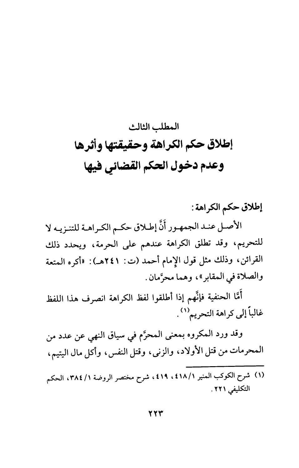 (¬1) شرح الكوكب المنير 1/ 418، 419، شرح مختصر الروضة 1/ 384، الحكم التكليفي 221.
