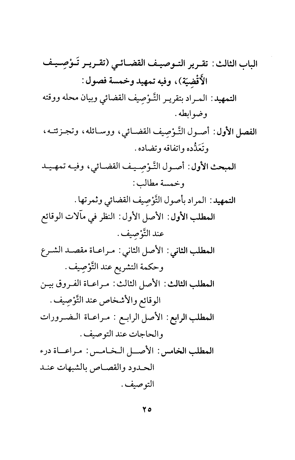 الباب الثالث: تقرير التوصيف القضائي (تقرير تَوْصِيف الأَقْضِيَة)، وفيه تمهيد وخمسة فصول: