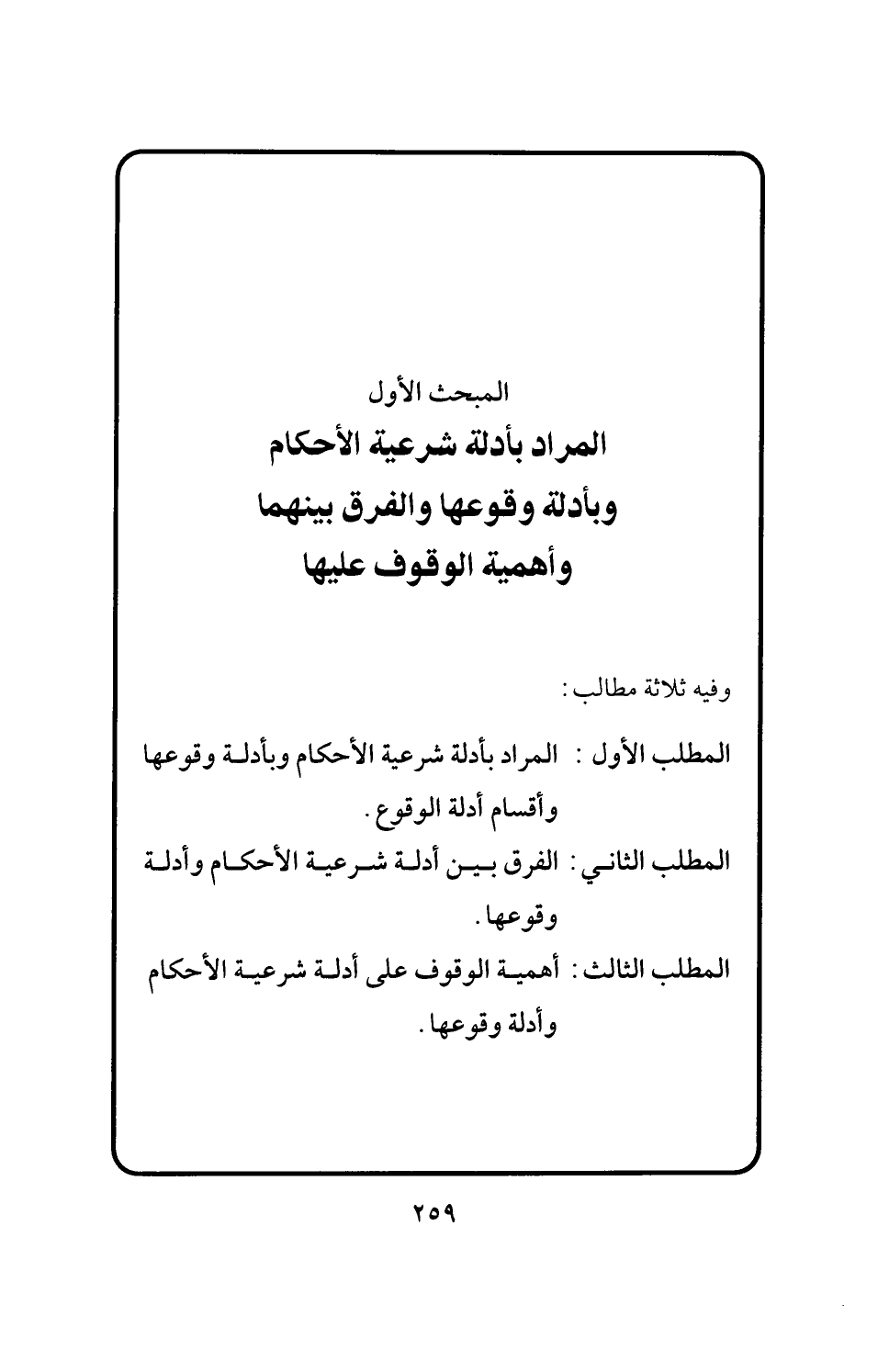 المبحث الأول المراد بأدلة شرعية الأحكام وبأدلة وقوعها والفرق بينهما وأهمية الوقوف عليها