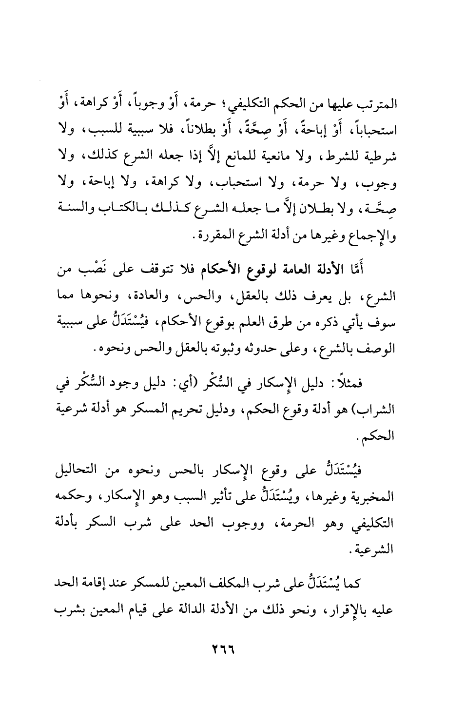 المترتب عليها من الحكم التكليفي؛ حرمة، أَوْ وجوبًا، أَوْ كراهة، أَوْ استحبابًا، أَوْ إباحةً، أَوْ صِحَّةً، أَوْ بطلانًا، فلا سببية للسبب، ولا شرطية للشرط، ولا مانعية للمانع إلَّا إذا جعله الشرع كذلك، ولا وجوب، ولا حرمة، ولا استحباب، ولا كراهة، ولا إباحة، ولا صِحَّة، ولا بطلان إلَّا ما جعله الشرع كذلك بالكتاب والسنة والِإجماع وغيرها من أدلة الشرع المقررة.