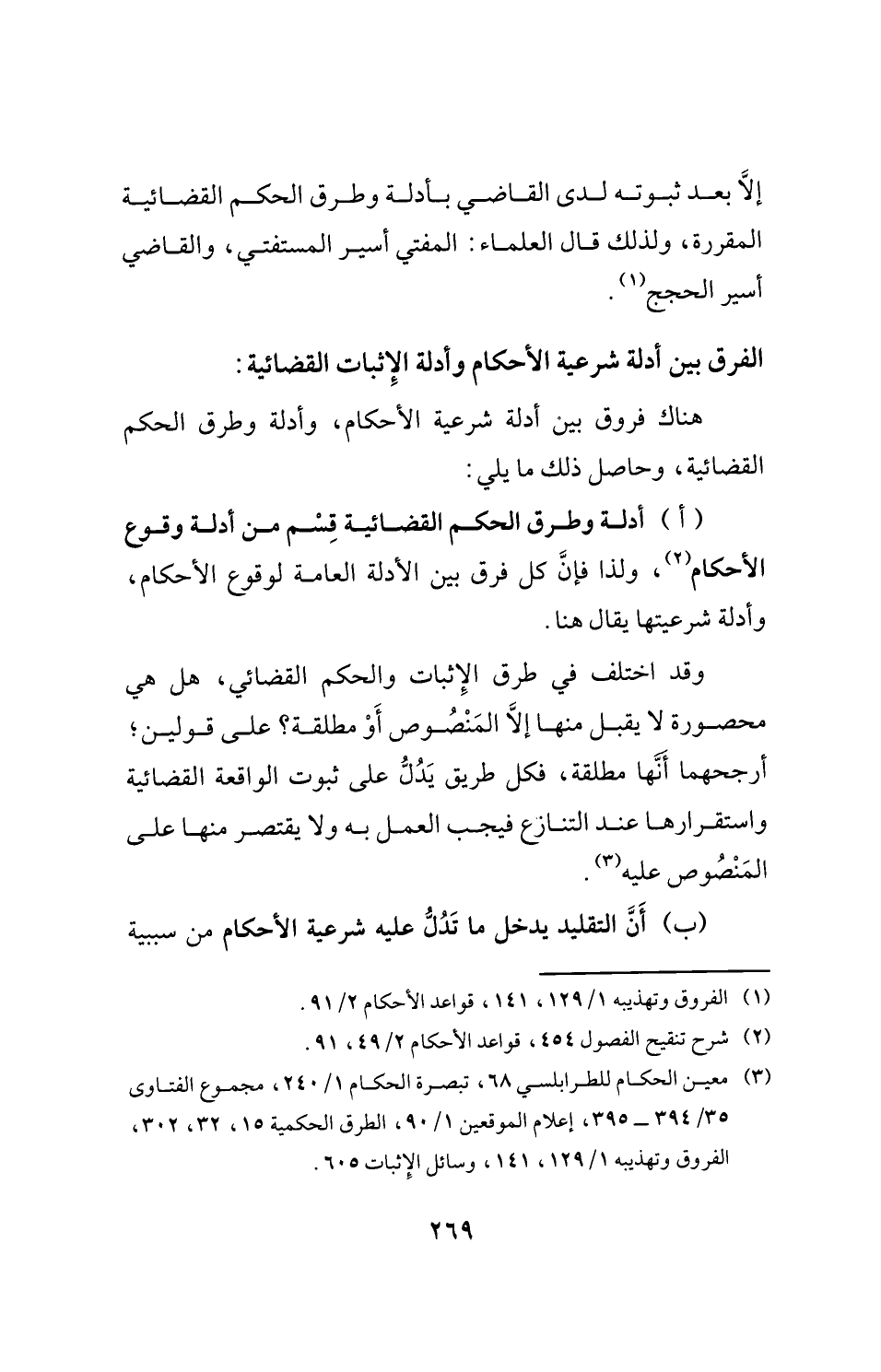 (¬3) معين الحكام للطرابلسي 68، تبصرة الحكام 1/ 240، مجموع الفتاوى 35/ 394 - 395، إعلام الموقعين 1/ 90، الطرق الحكمية 15، 32، 302، الفروق وتهذيبه 1/ 129، 141، وسائل الإِثبات 605.