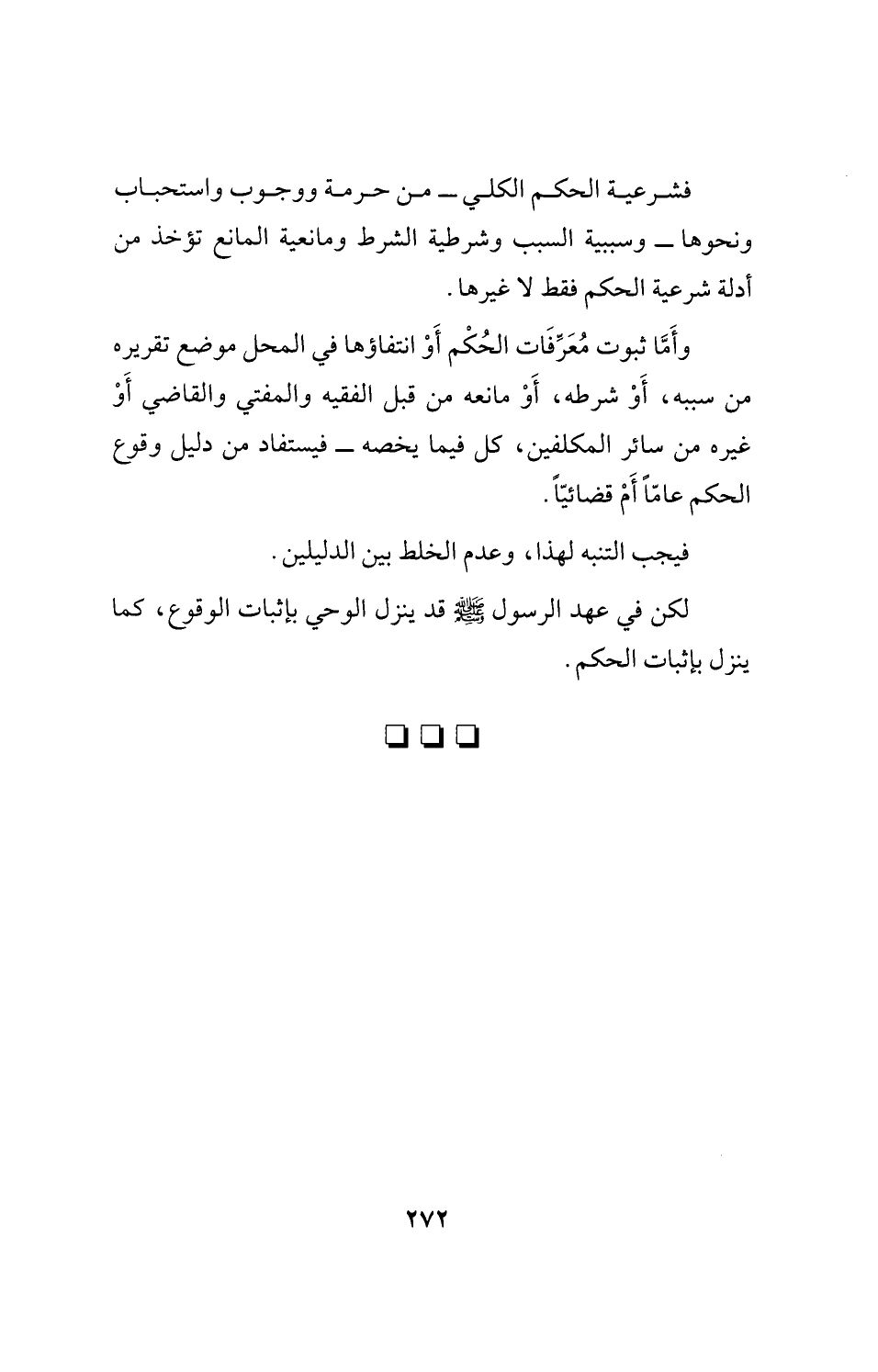 وأَمَّا ثبوت مُعَرِّفَات الحُكْم أَوْ انتفاؤها في المحل موضع تقريره من سببه، أَوْ شرطه، أَوْ مانعه من قبل الفقيه والمفتي والقاضي أَوْ غيره من سائر المكلفين، كل فيما يخصه - فيستفاد من دليل وقوع الحكم عامًّا أَمْ قضائيًّا.
