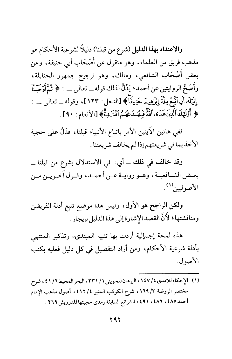 (¬1) الإِحكام للآمدي 4/ 147، البرهان للجويني 1/ 331، البحر المحيط 6/ 41، شرح مختصر الروضة 3/ 169، شرح الكوكب المنير 4/ 412، أصول مذهب الإِمام أحمد 485، 486، 491، الشرائع السابقة ومدى حجيتها للدرويش 269.