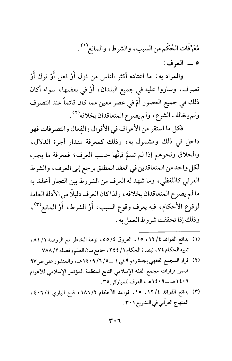 (¬2) قرار المجمع الفقهي بجدة رقم 9 في 1 - 5/ 6/ 1409 هـ، والمنشور على ص 97 ضمن قرارات مجمع الفقه الِإسلامي التابع لمنظمة المؤتمر الِإسلامي للأعوام 1406 هـ -1409 هـ، العرف للمباركي 35.