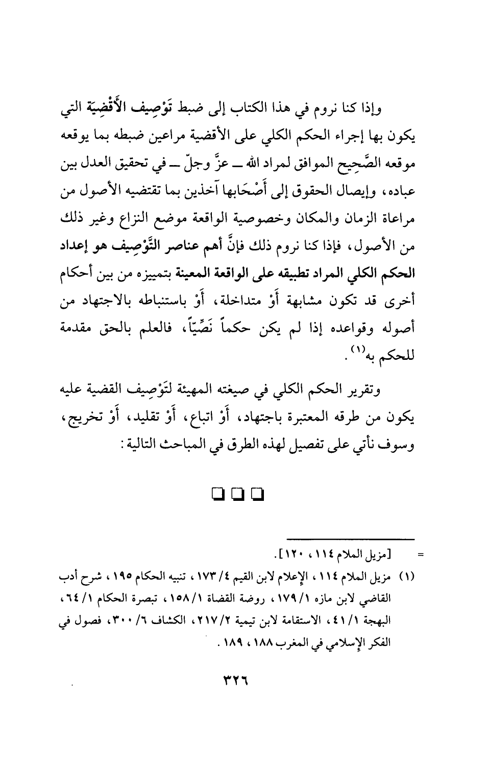 (¬1) مزيل الملام 114، الإِعلام لابن القيم 4/ 173، تنبيه الحكام 195، شرح أدب القاضي لابن مازه 1/ 179، روضة القضاة 1/ 158، تبصرة الحكام 1/ 64، البهجة 1/ 41، الاستقامة لابن تيمية 2/ 217، الكشاف 6/ 300، فصول في الفكر الإِسلامي في المغرب 188، 189.