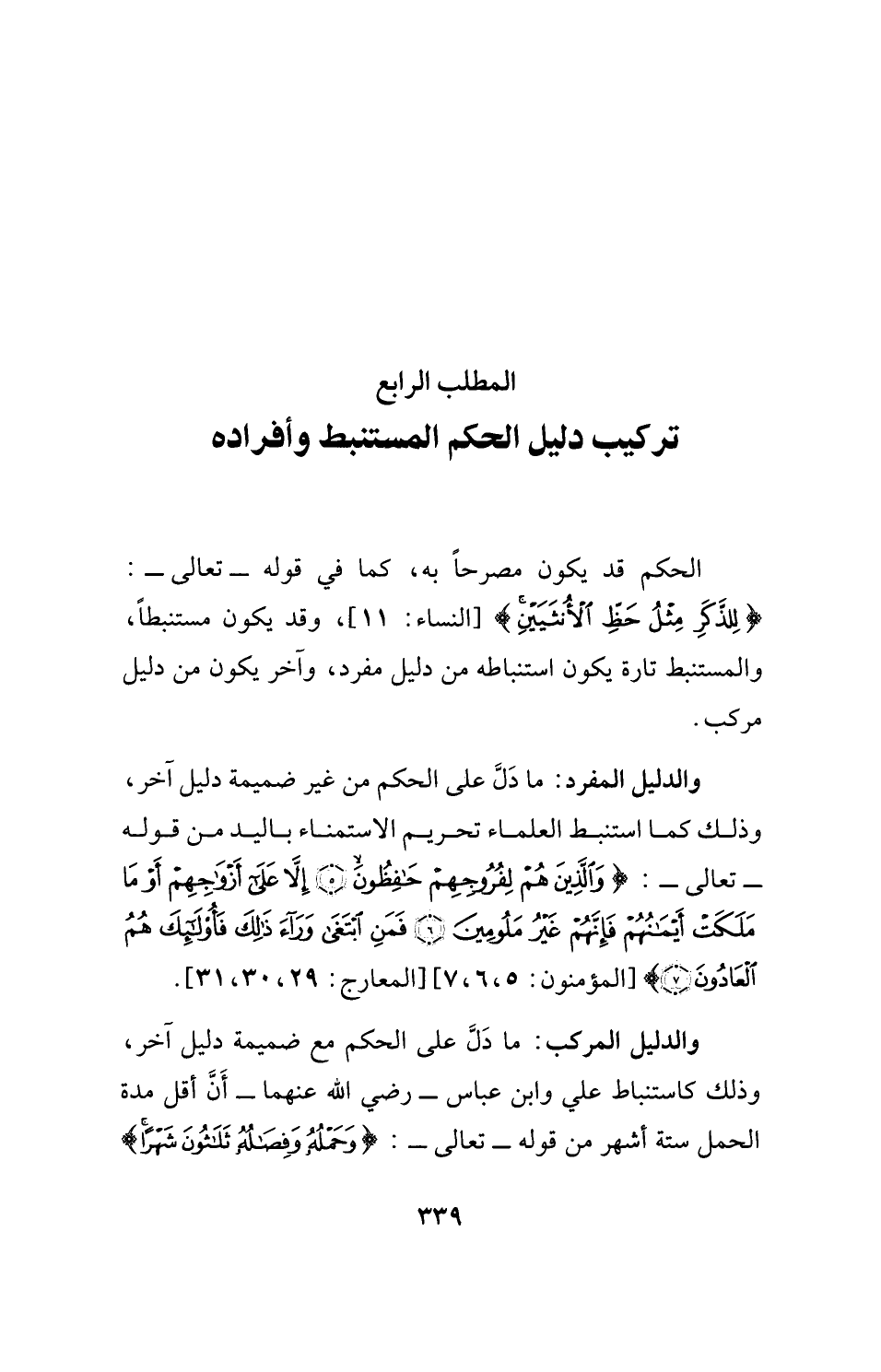 المطلب الرابع تركيب دليل الحكم المستنبط وأفراده