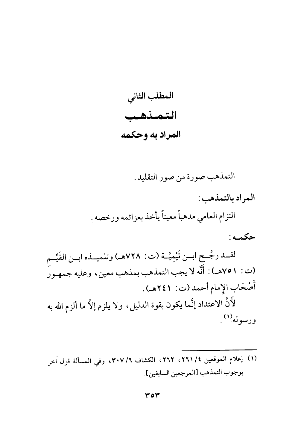 (¬1) إعلام الموقعين 4/ 261، 262، الكشاف 6/ 307، وفي المسألة قول آخر بوجوب التمذهب [المرجعين السابقين].
