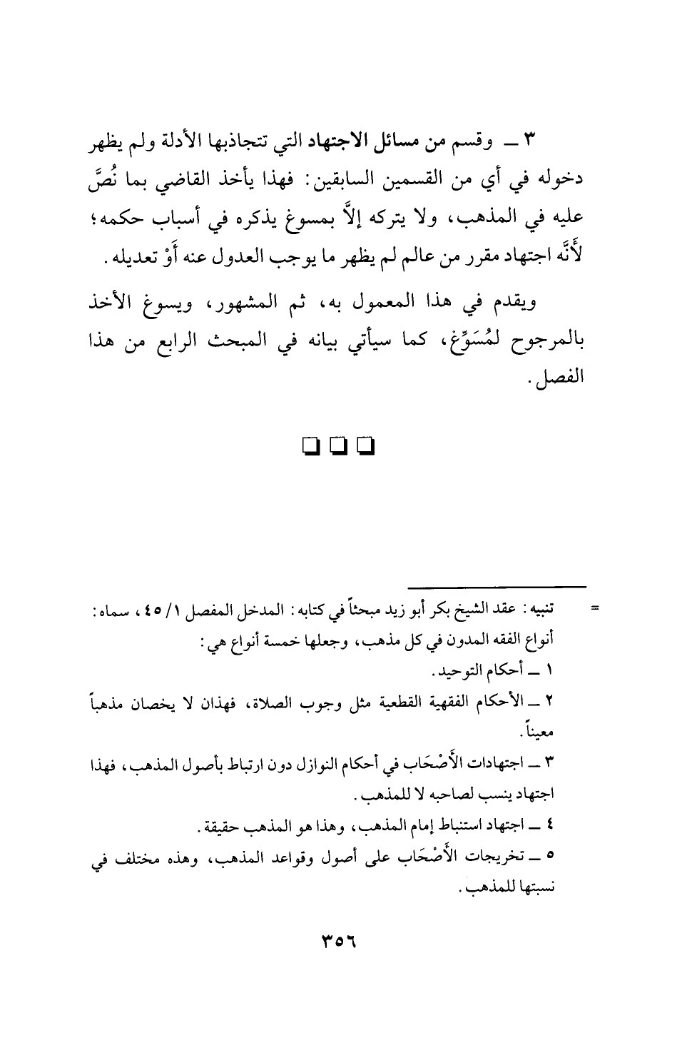 = تنبيه: عقد الشيخ بكر أبو زيد مبحثًا في كتابه: المدخل المفصل 1/ 45، سماه: أنواع الفقه المدون في كل مذهب، وجعلها خمسة أنواع هي: