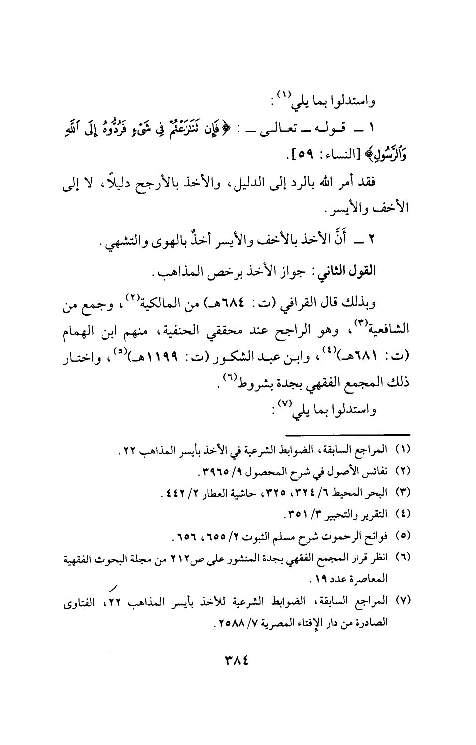 (¬1) المراجع السابقة، الضوابط الشرعية في الأخذ بأيسر المذاهب 22.