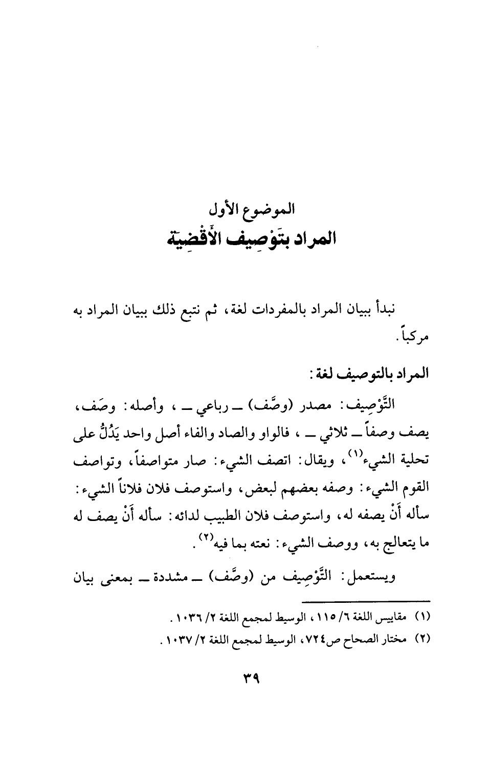 الموضوع الأول المراد بتَوْصِيف الأَقْضِية