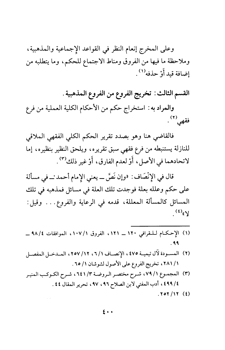 القسم الثالث: تخريج الفروع من الفروع المذهبية.
