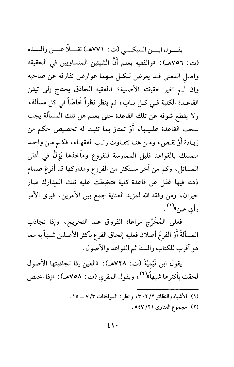 يقول ابن تَيْمِيَّةَ (ت: 728 هـ): "العين إذا تجاذبتها الأصول لحقت بأكثرها شبهًا" (¬2)، ويقول المقري (ت: 758 هـ): "إذا اختص