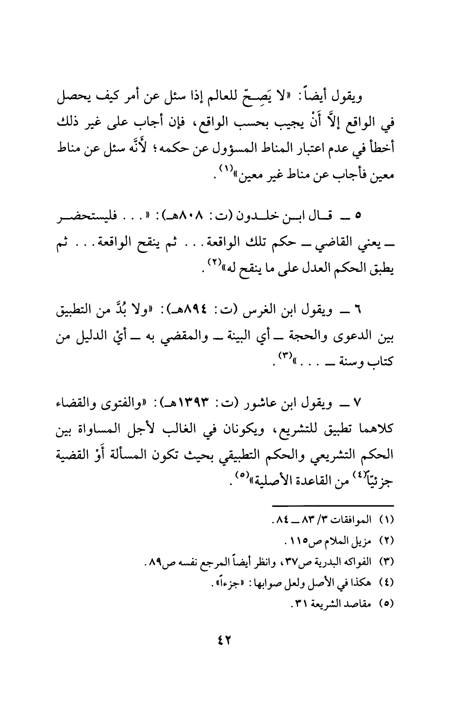5 - قال ابن خلدون (ت: 808 هـ): " ... فليستحضر - يعني القاضي- حكم تلك الواقعة ... ثم ينقح الواقعة ... ثم يطبق الحكم العدل على ما ينقح له" (¬2).