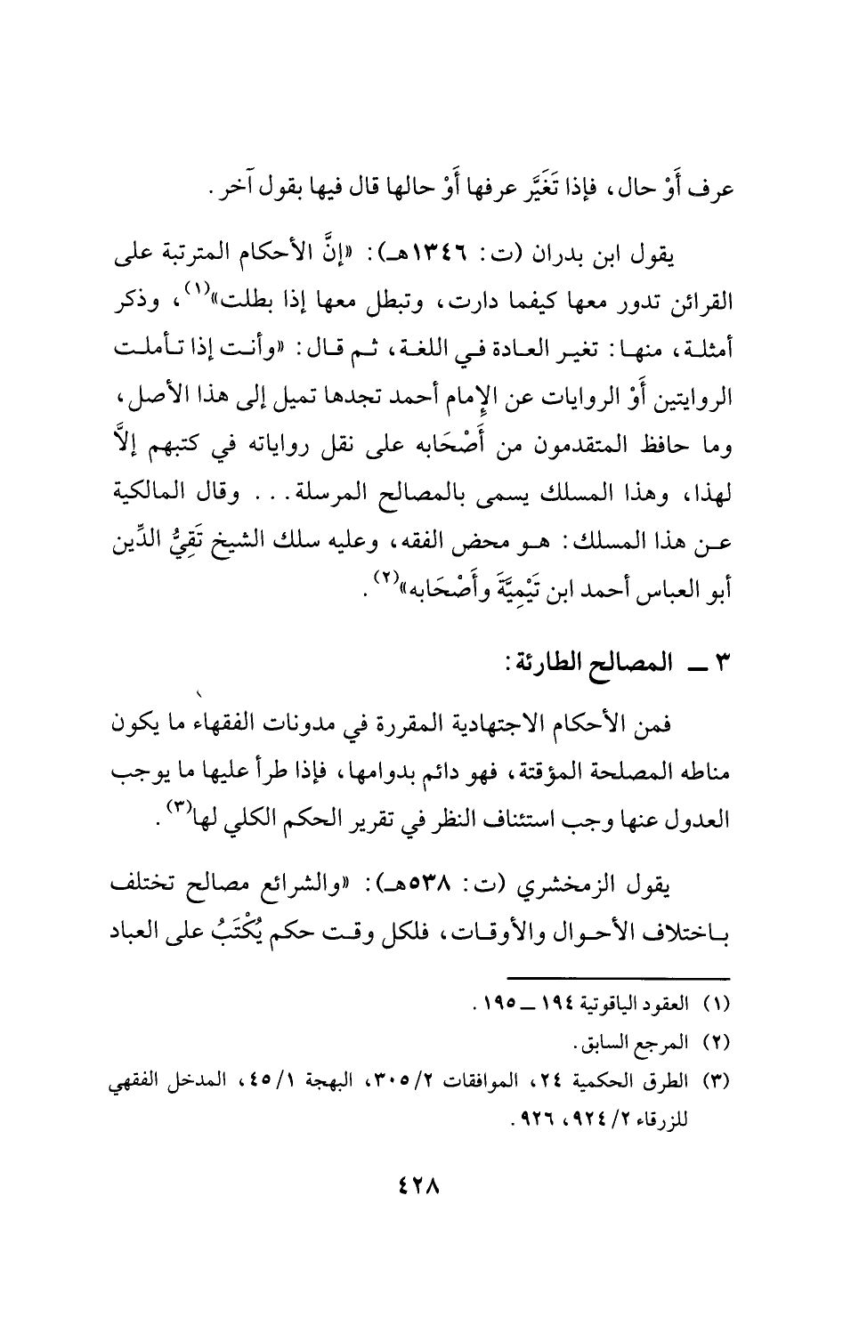 (¬3) الطرق الحكمية 24، الموافقات 2/ 305، البهجة 1/ 45، المدخل الفقهي للزرقاء 2/ 924، 926.