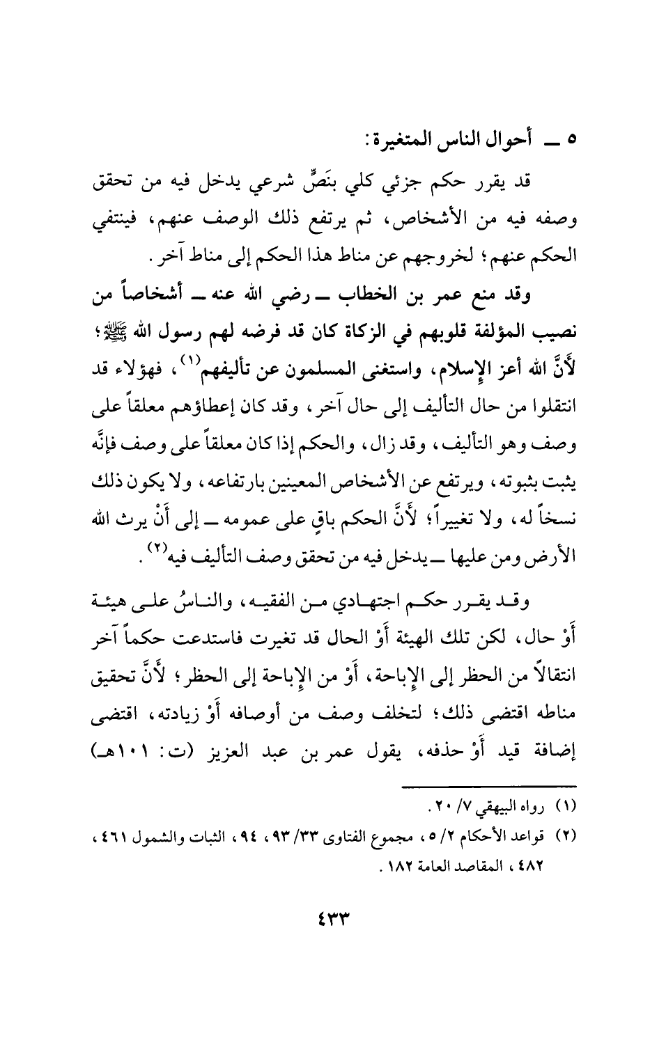 (¬2) قواعد الأحكام 2/ 5، مجموع الفتاوى 33/ 93، 94، الثبات والشمول 461، 482، المقاصد العامة 182.