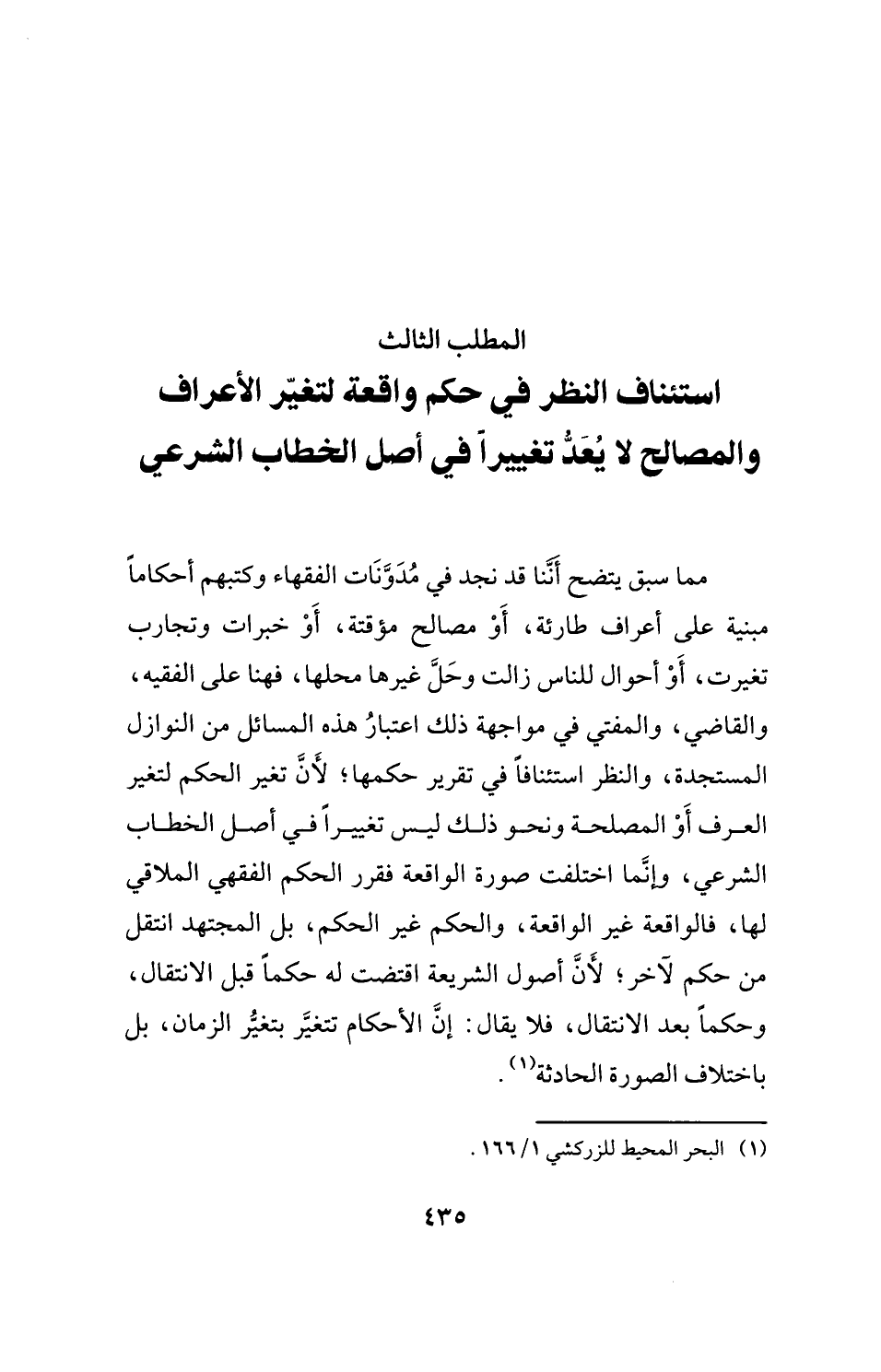 المطلب الثالث استئناف النظر في حكم واقعة لتغيّر الأعراف والمصالح لا يُعَدُّ تغييرًا في أصل الخطاب الشرعي