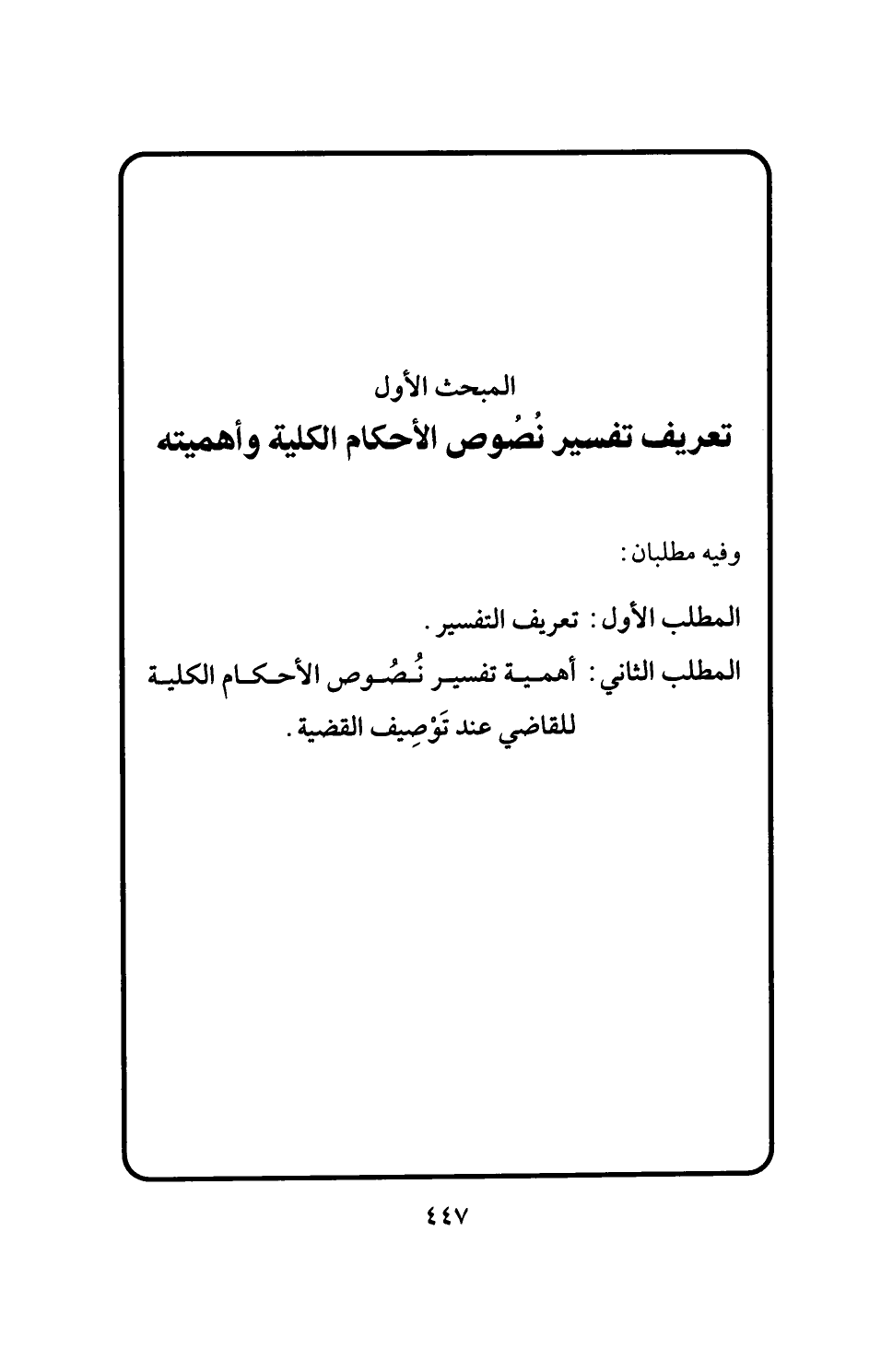 المبحث الأول تعريف تفسير نُصُوص الأحكام الكلية وأهميته