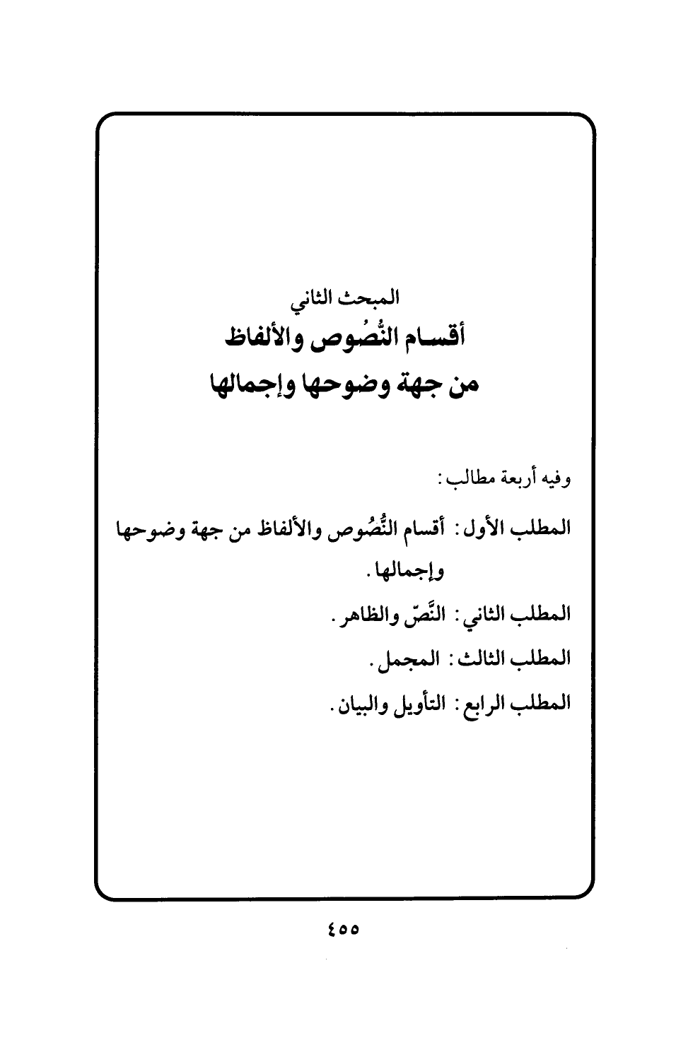 المبحث الثاني أقسام النُّصُوص والألفاظ من جهة وضوحها وإجمالها