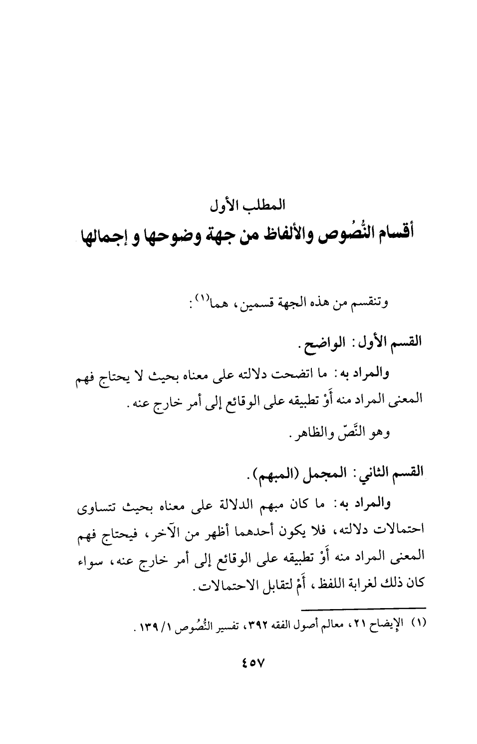 المطلب الأول أقسام النُّصُوص والألفاظ من جهة وضوحها وإجمالها