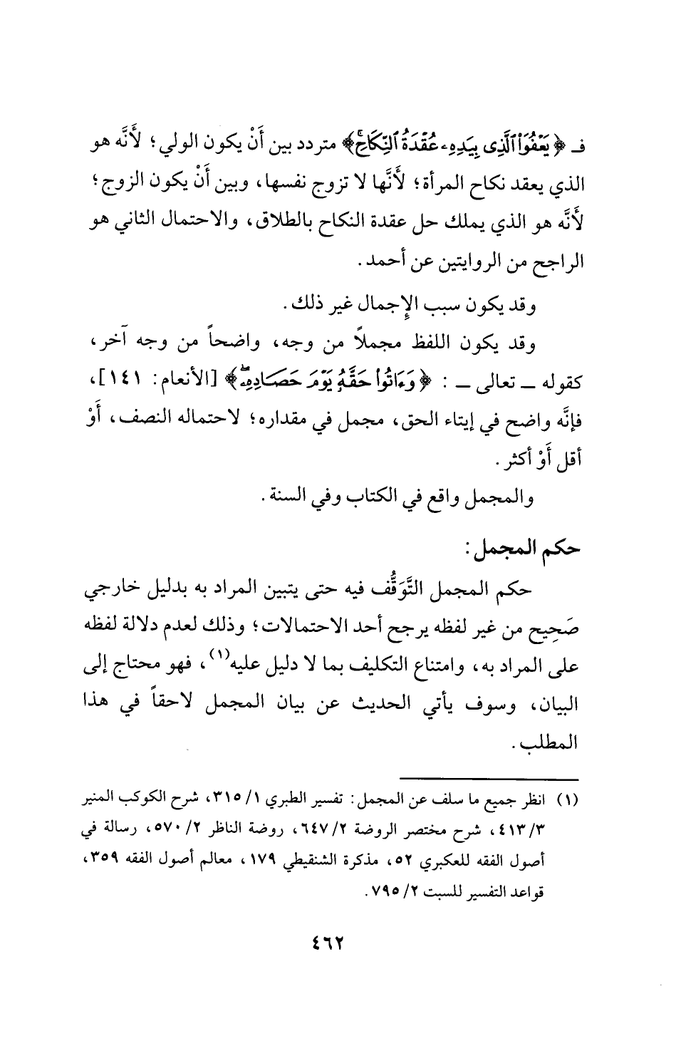 (¬1) انظر جميع ما سلف عن المجمل: تفسير الطبري 1/ 315، شرح الكوكب المنير 3/ 413، شرح مختصر الروضة 2/ 647، روضة الناظر 2/ 570، رسالة في أصول الفقه للعكبري 52، مذكرة الشنقيطي 179، معالم أصول الفقه 359، قواعد التفسير للسبت 2/ 795.
