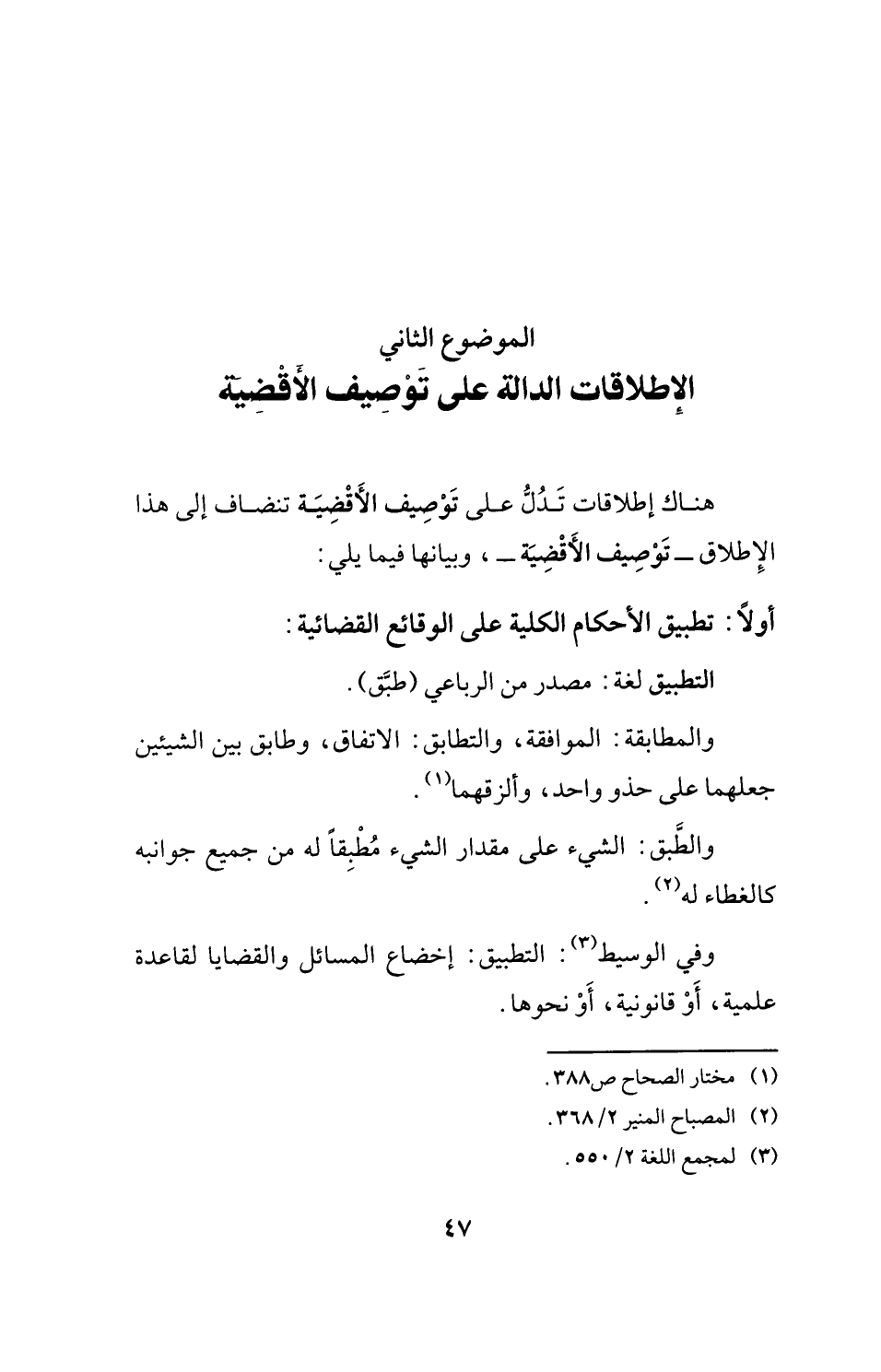 الموضوع الثاني الِإطلاقات الدالة على تَوْصِيف الأَقْضِية