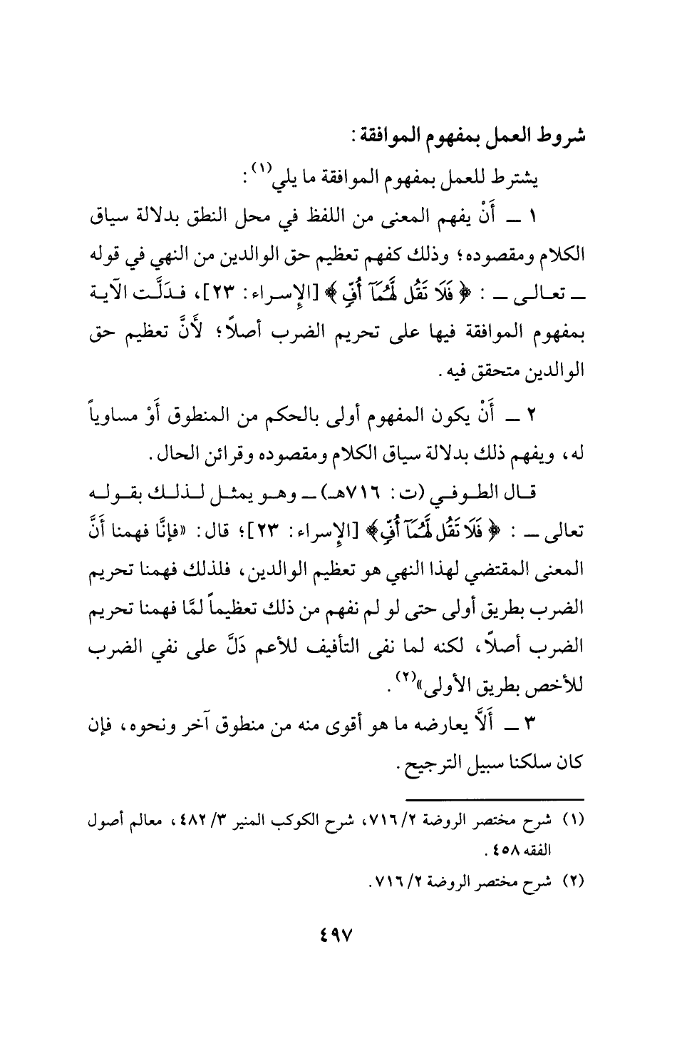 (¬1) شرح مختصر الروضة 2/ 716، شرح الكوكب المنير 3/ 482، معالم أصول الفقه 458.