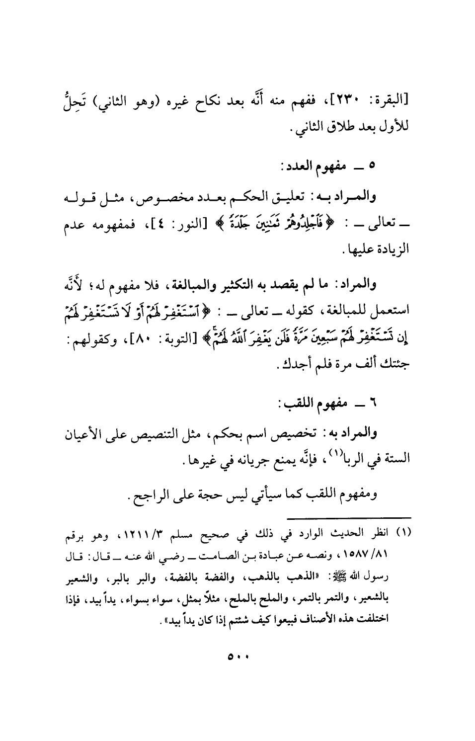 (¬1) انظر الحديث الوارد في ذلك في صحيح مسلم 3/ 1211، وهو برقم 81/ 1587، ونصه عن عبادة بن الصامت- رضي الله عنه- قال: قال رسول الله - صلى الله عليه وسلم -: "الذهب بالذهب، والفضة بالفضة، والبر بالبر، والشعير بالشعير، والتمر بالتمر، والملح بالملح، مثلًا بمثل، سواء بسواء، يدًا بيد، فإذا اختلفت هذه الأصناف فبيعوا كيف شئتم إذا كان يدًا بيد".