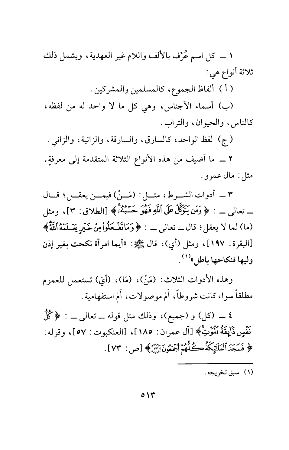 1 - كل اسم عُرِّف بالألف واللام غير العهدية، ويشمل ذلك ثلاثة أنواع هي: