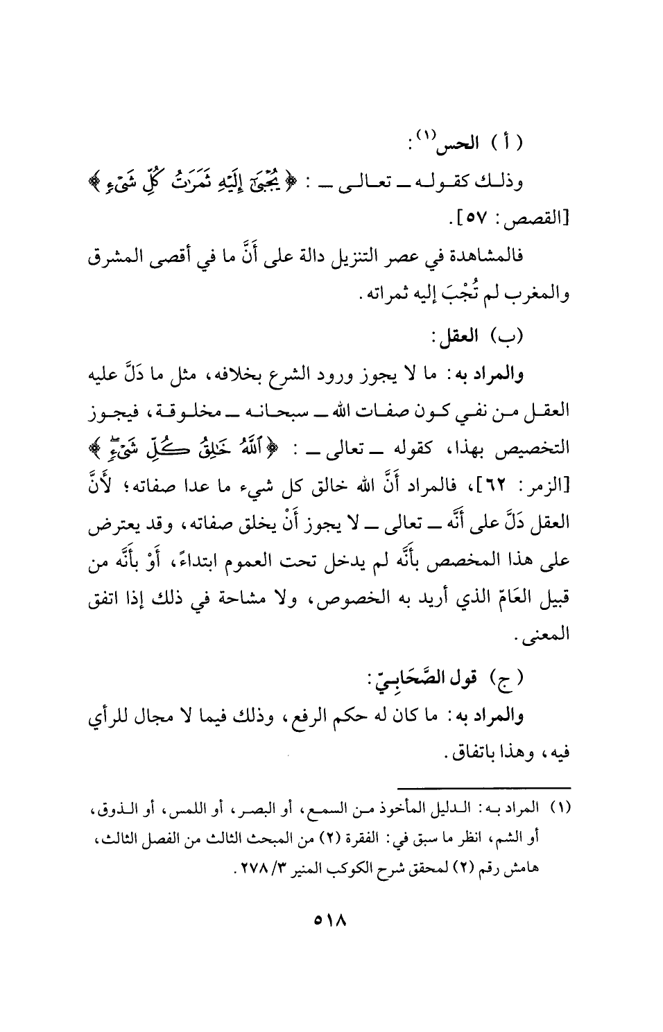 (¬1) المراد به: الدليل المأخوذ من السمع، أو البصر، أو اللمس، أو الذوق، أو الشم، انظر ما سبق في: الفقرة (2) من المبحث الثالث من الفصل الثالث، هامش رقم (2) لمحقق شرح الكوكب المنير 3/ 278.
