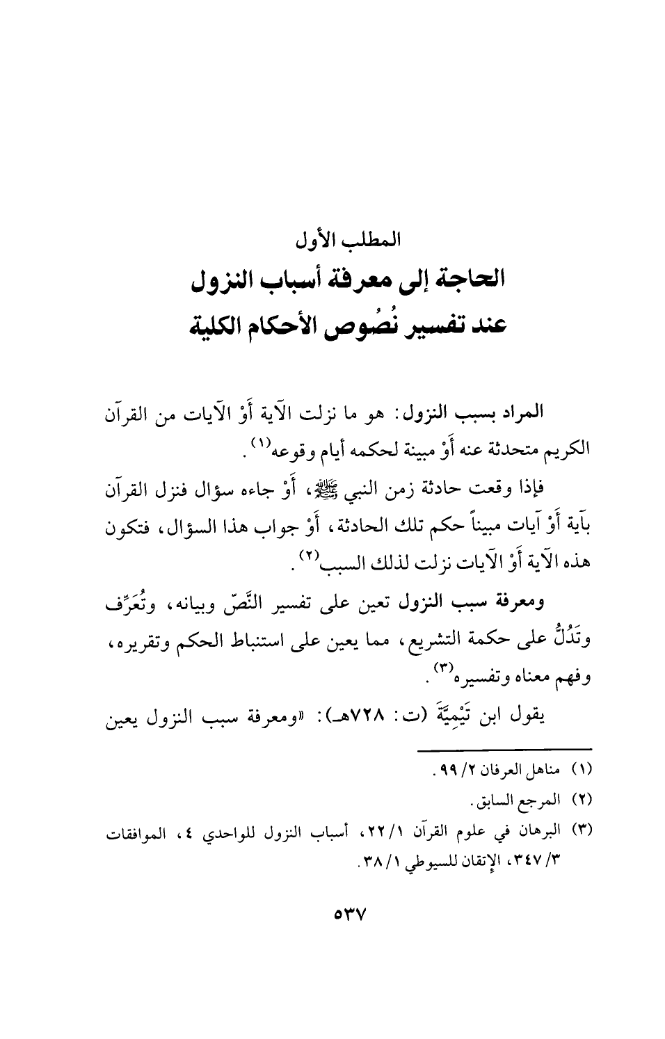 (¬3) البرهان في علوم القرآن 1/ 22، أسباب النزول للواحدي 4، الموافقات 3/ 347، الإِتقان للسيوطي 1/ 38.
