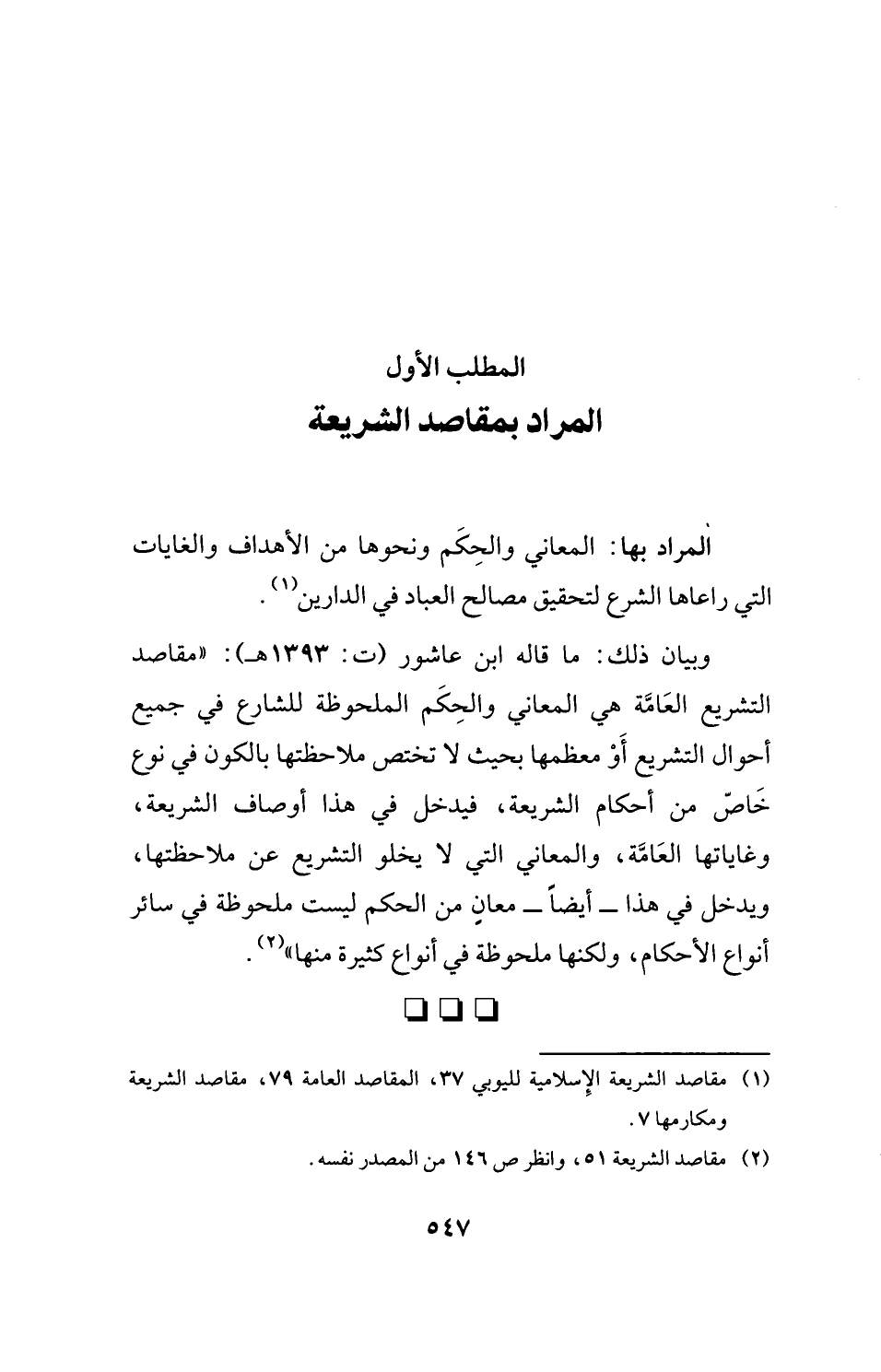 (¬1) مقاصد الشريعة الإِسلامية لليوبي 37، المقاصد العامة 79، مقاصد الشريعة ومكارمها 7.