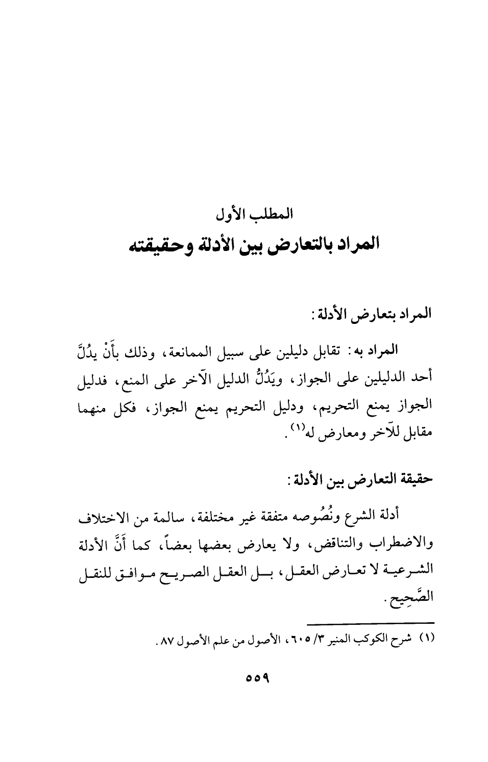 (¬1) شرح الكوكب المنير 3/ 605، الأصول من علم الأصول 87.