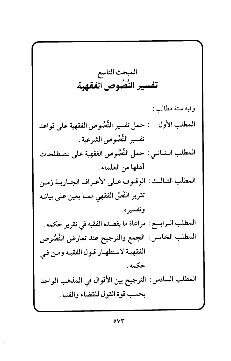 المبحث التاسع تفسير النُّصُوص الفقهية