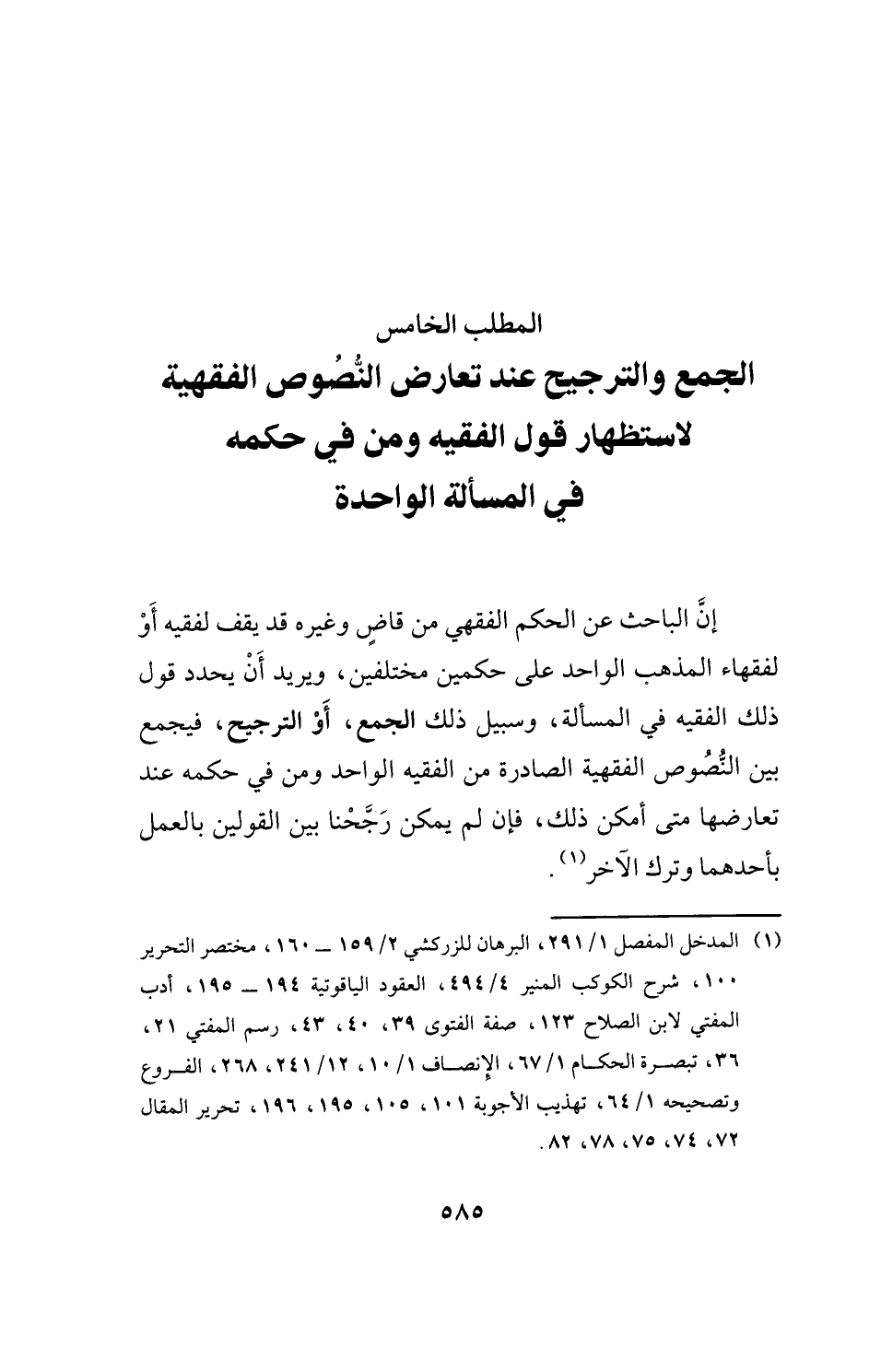 المطلب الخامس الجمع والترجيح عند تعارض النُّصُوص الفقهية لاستظهار قول الفقيه ومن في حكمه في المسألة الواحدة