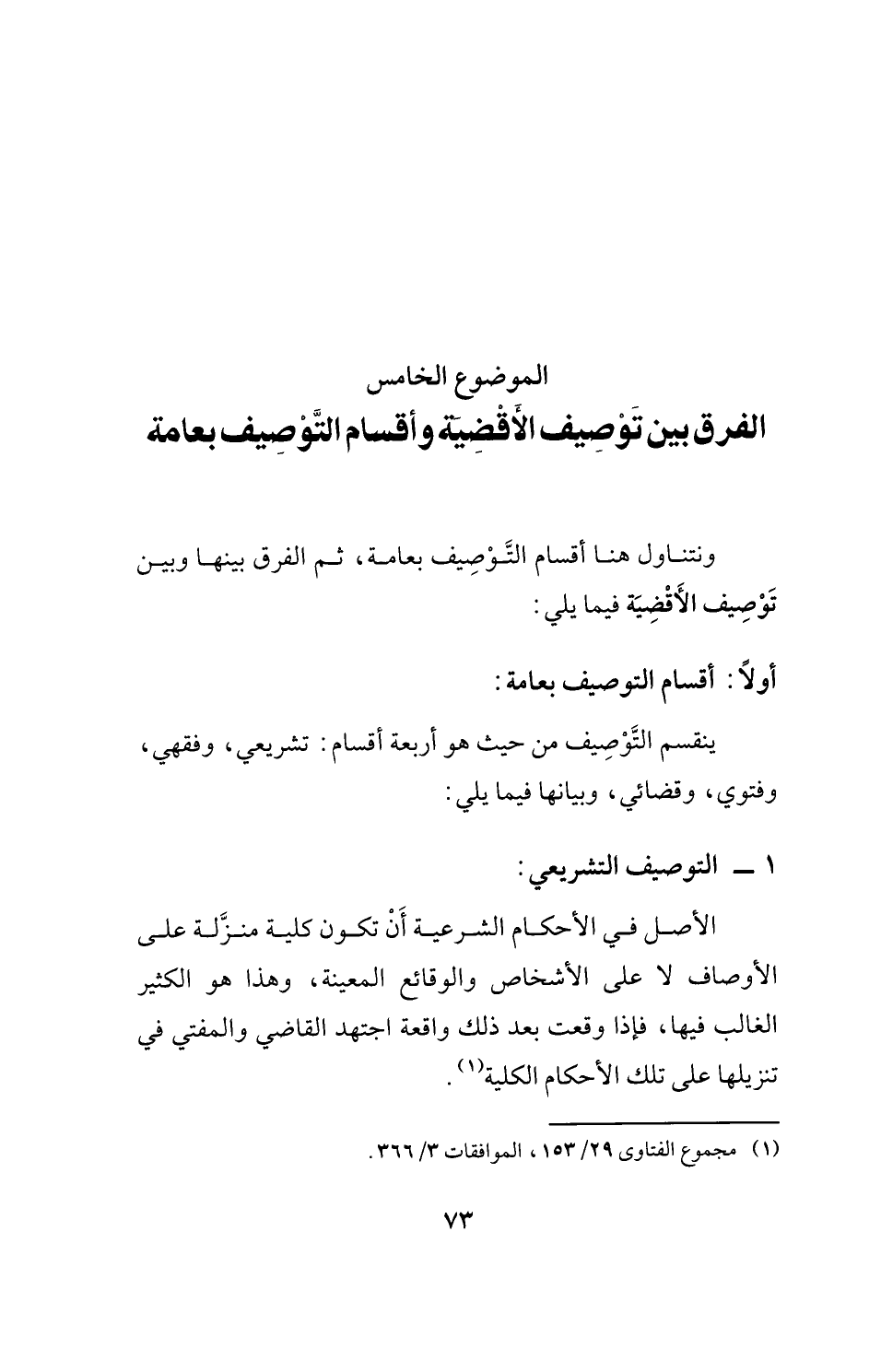 الموضوع الخامس الفرق بين تَوْصِيف الأَقْضِيَة وأقسام التَّوْصِيف بعامة