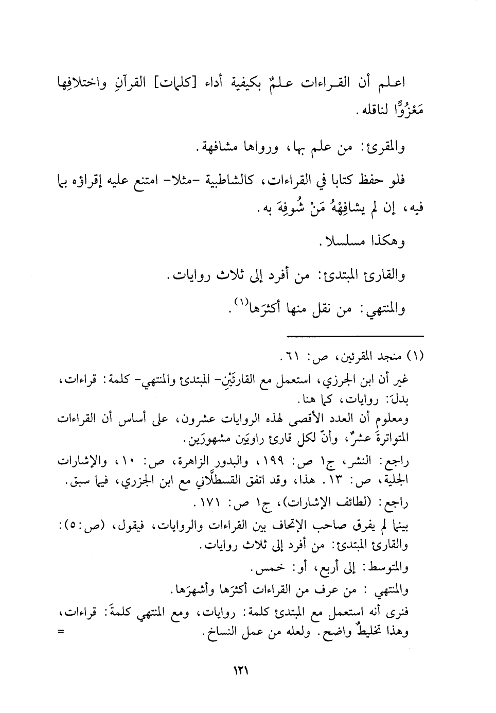 والقارئ الْمُبْتَدِئ: من أفرد إِلَى ثَلَاث رِوَايَات.