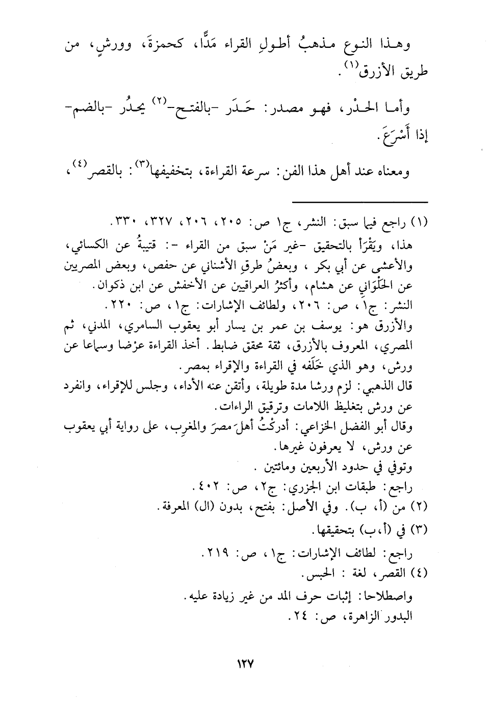وَمَعْنَاهُ عِنْد أهل هَذَا الْفَنّ: سرعَة الْقِرَاءَة، بتخفيفها: بِالْقصرِ،