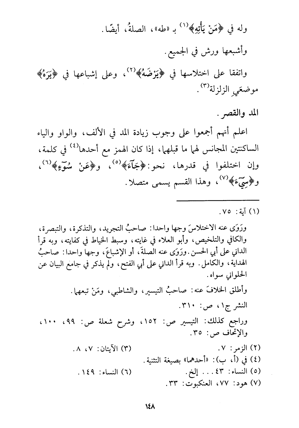 واتفقا على اختلاسها فِي {يرضه} ، وعَلى إشباعها فِي {يره} موضعي الزلزلة.